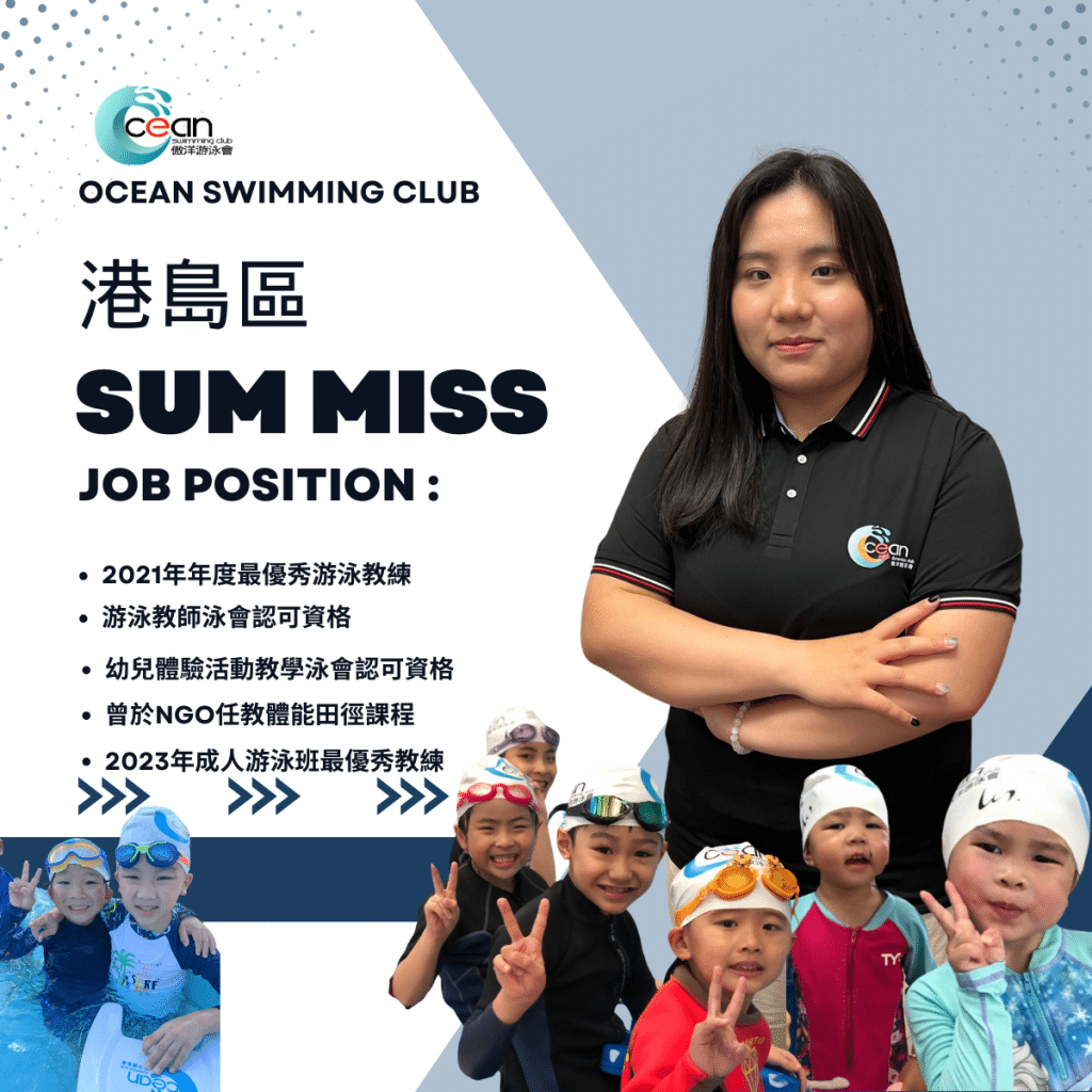 有,並且經驗非常豐富。傲洋泳會的游泳教練團隊來自唔同背景,包括前校隊、學界冠軍、全職教練及多年教學經驗導師。我哋重視實戰與教學技巧,所有教練都經過嚴格內部培訓與考核,並具備持續進修精神。