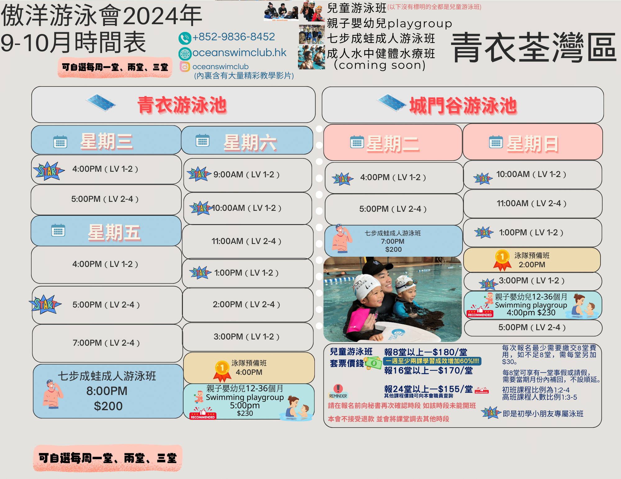 按年齡及水平分班: 無論是初學游泳的孩童,還是已有基礎希望精進泳技的學員,都能找到適合的班級。