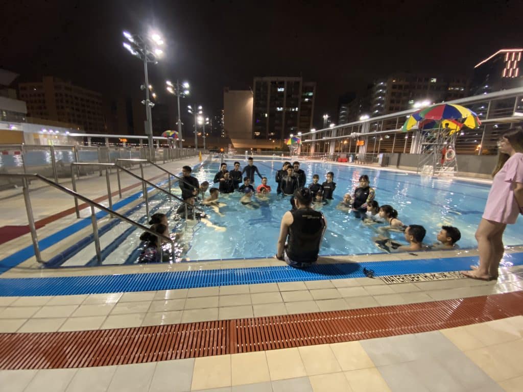 初學者會喺淺水區學習基本水感、呼吸同漂浮,當你適應之後,先會逐步學識滑行、腿部推水、再過渡到真正游法。好多學生由最初唔敢落水,到後來可以獨立游畢全池,完全係經過引導同建立自信完成。