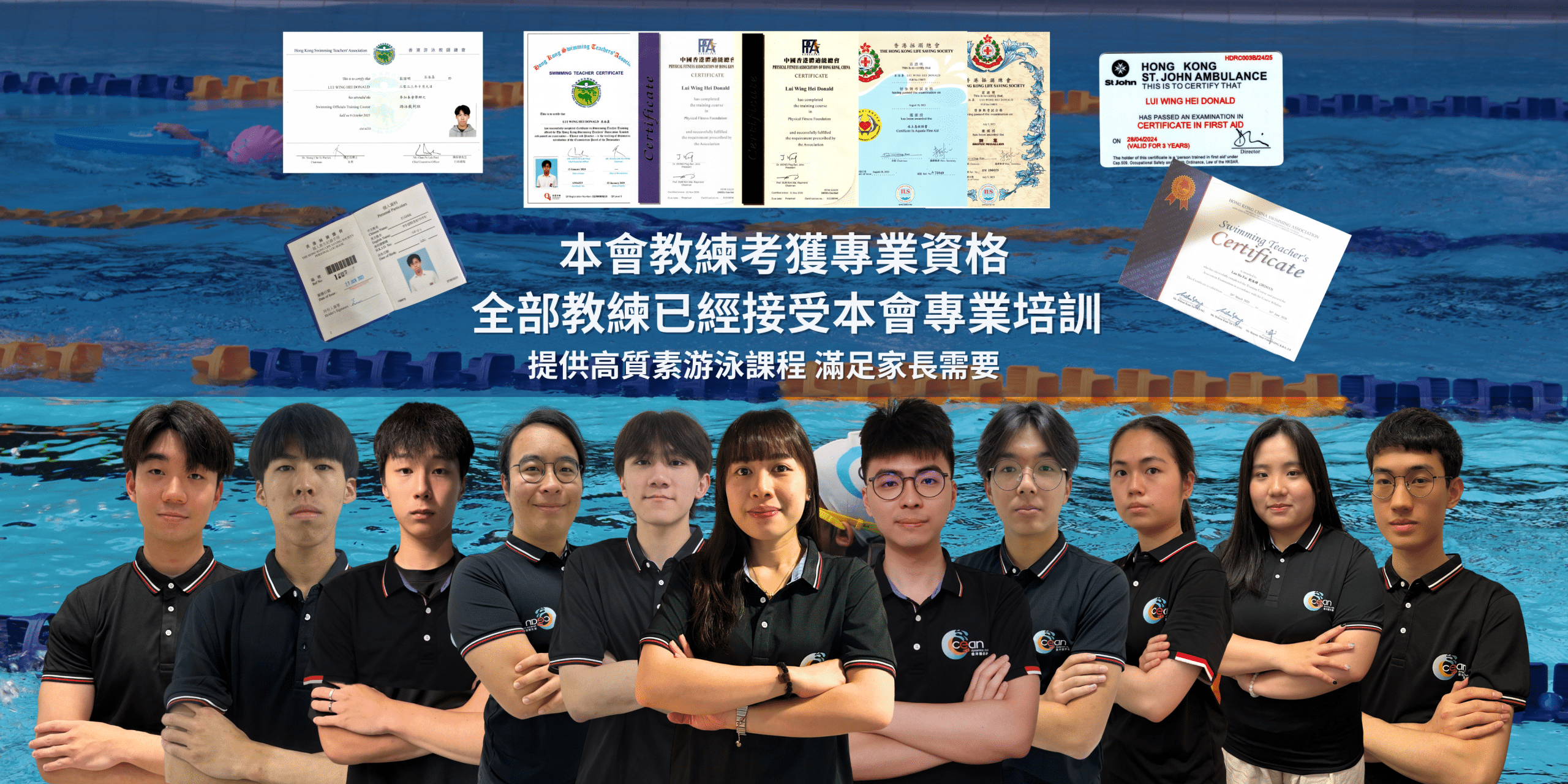 喺我哋傲洋游泳會,每一位男教練都係經過嚴格挑選與培訓,當中不乏曾任教於幼稚園、擁有心理學或體育教育背景的導師,佢哋嘅共通點係:
