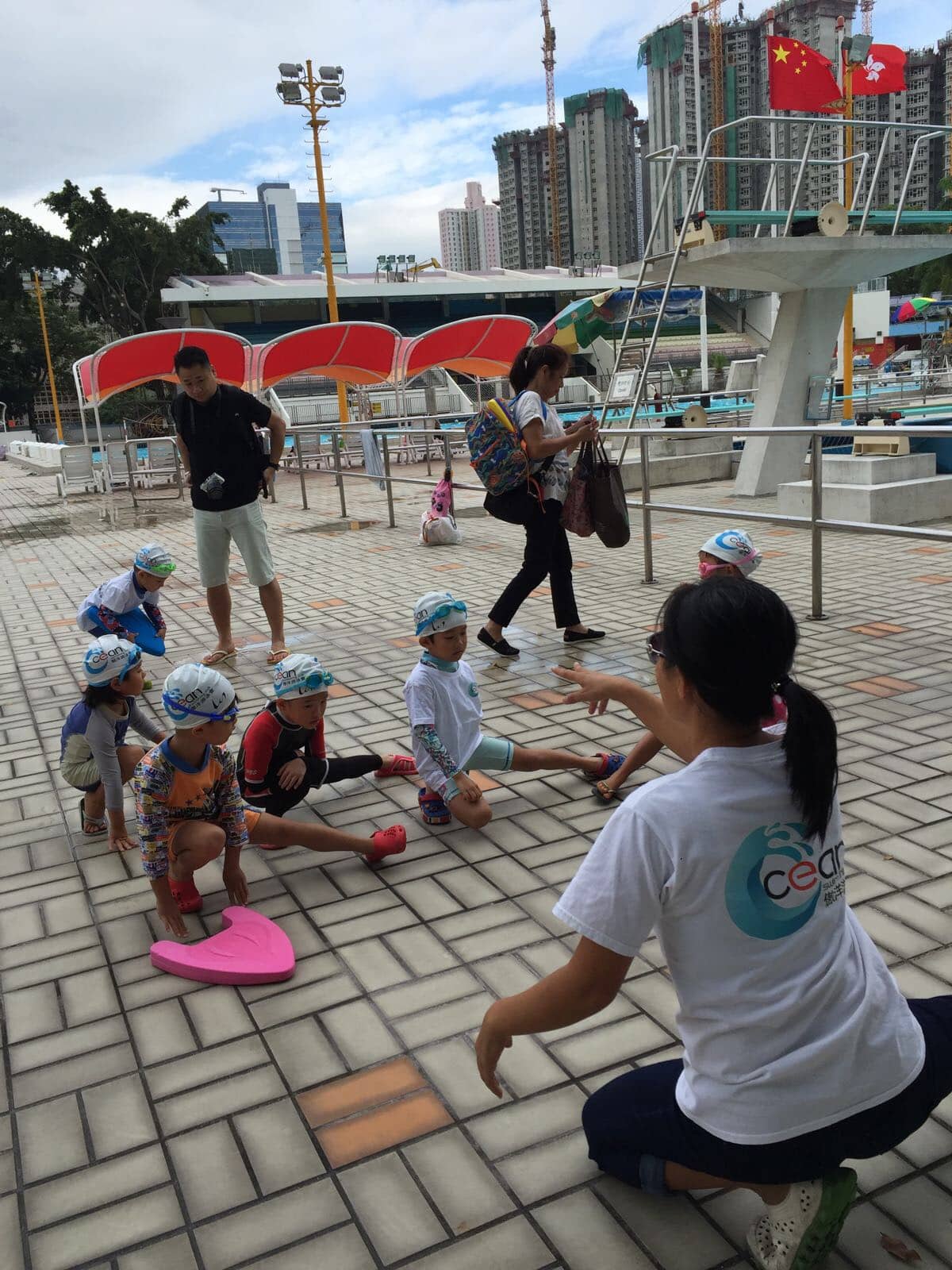 小朋友必須穿著合適泳衣、泳帽、拖鞋及自備毛巾。